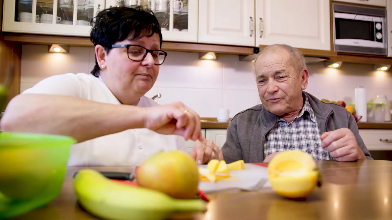 Wenn ich zu Besuch bin, die haben immer ein Programm für die älteren Herrschaften. Das finde ich einfach toll. Also ob das Singen ist, eben haben sie Stadt, Land, Fluss gespielt.